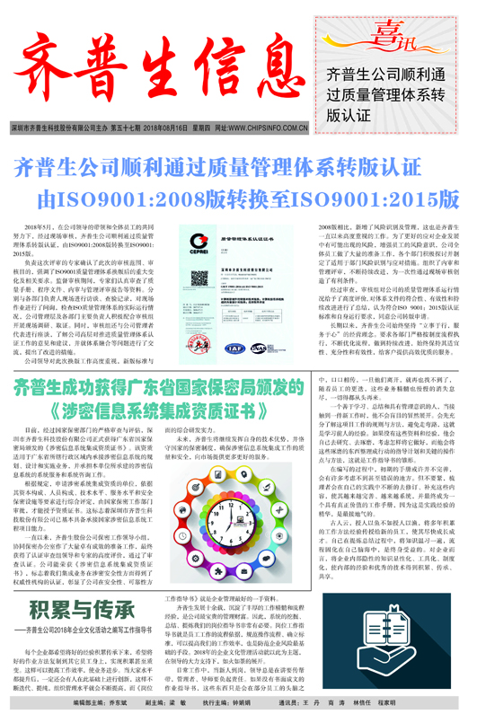 齊普生公司順利通過質(zhì)量管理體系轉(zhuǎn)版認(rèn)證 由ISO9001:2008版轉(zhuǎn)換至ISO9001:2015版
